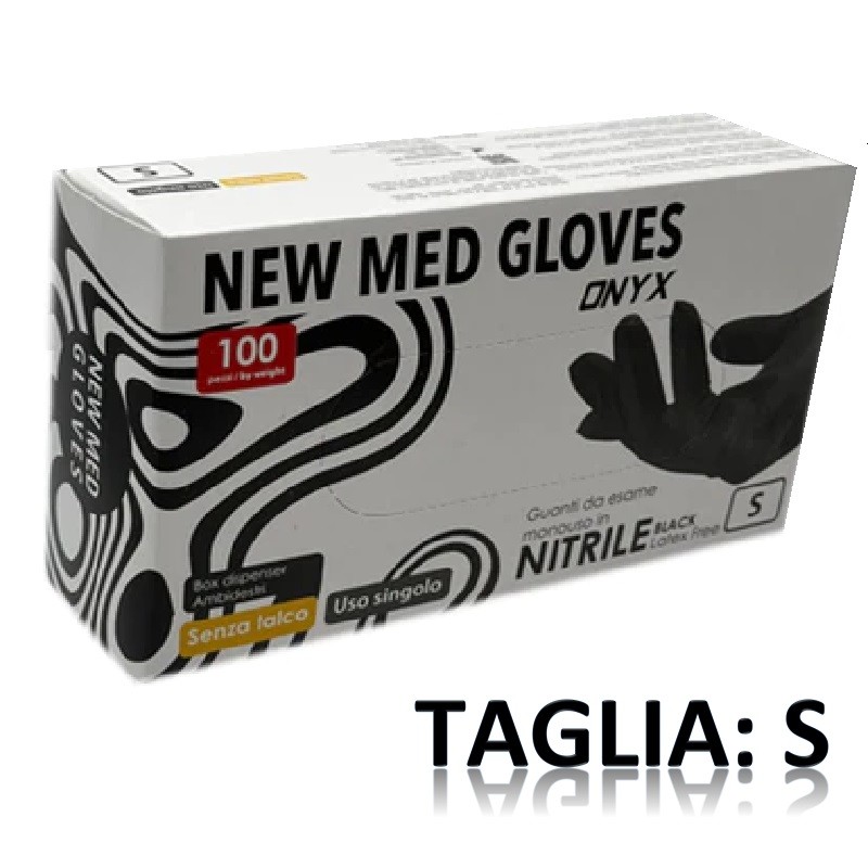 MED CONSULTING ONYX GUANTI NITRILE MONOUSO NERO MISURA SMALL CONFEZIONE DA 100 PZ.